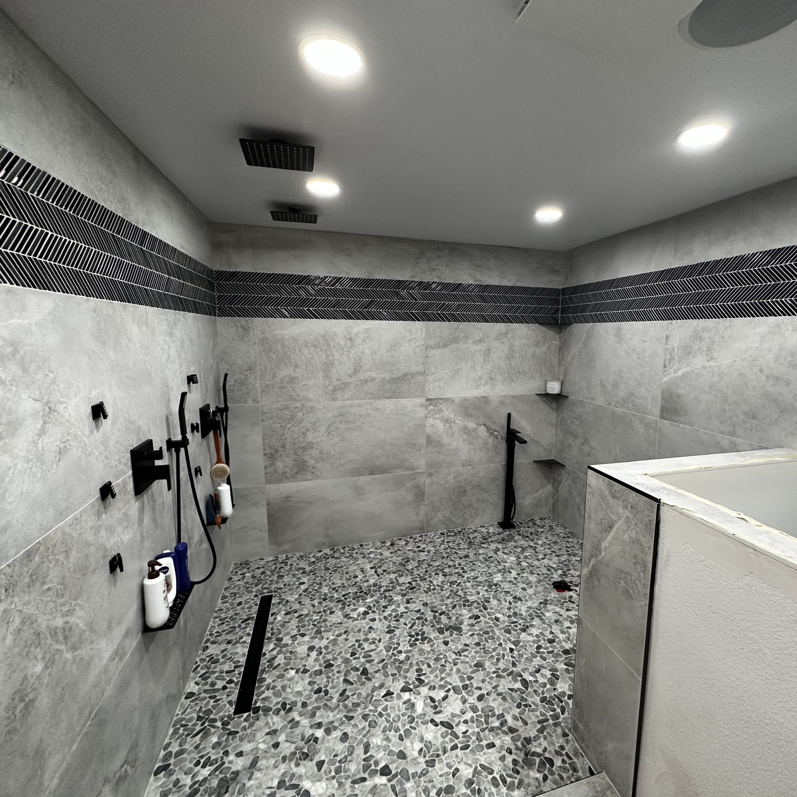 Experience tranquility with our impeccably installed tiles, making every shower a rejuvenating experience